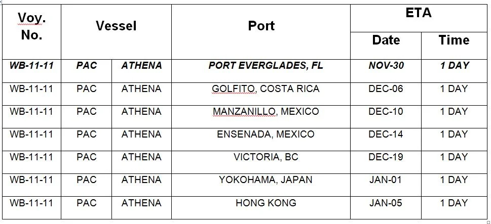 Based on the latest loading schedule this vessel is due to arrive in Port Everglades on November 29th PM. Yacht loading operations are now planned to commence on the morning of November 30th.
